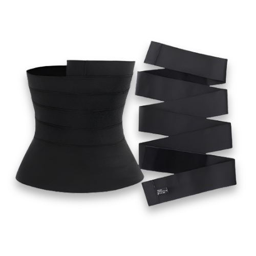 Enrolar a cinta diversas vezes em seu abdômen até que esteja completamente comprimida, para afinar e modelar a cintura, usando o velcro para fixar a cinta no local desejado!